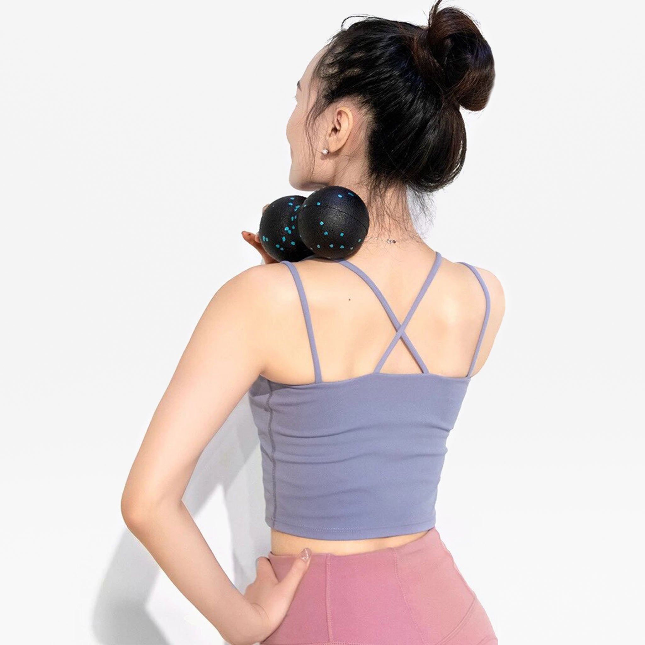 Pour les zones que vous ne pouvez pas atteindre avec vos bras, ou si vous souhaitez intensifier la pression, vous pouvez vous appuyer contre un mur avec la balle de massage double ou vous allonger dessus.